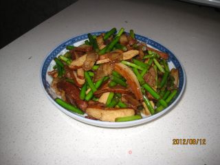 “ 家里人爱吃蒜苔,可是蒜苔本身是很难入味的蔬菜,于是和豆干在一起炒,蒜苔的鲜味,加上豆干的香味,再加上五花肉的油汪汪的感觉,真的是米饭杀手。 ”