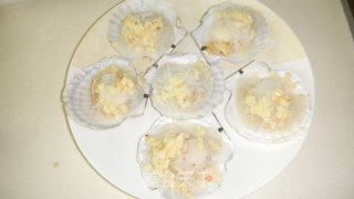 将扇贝用刷子刷洗干净(买的鲜活扇贝,让卖海鲜的直接帮着杀了并将沙囊等去除),控干水分装盘,将切碎的粉丝放至扇贝中