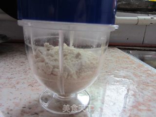 2、芝麻炒香后加玉米淀粉一起打碎。会有点成块,这是因为芝麻在打碎过程中会出油,加玉米淀粉可以很好的防止它们黏在一起,同时在炒馅时玉米淀粉也有吸干水分的作用。