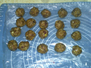 不经意间做了个苏式月饼的火腿馅,又不能做苏式月饼,怎么办呢?给改良改良勉强做成广式月饼吧。改良的方式就是加入熟面粉,让馅料能够支撑起来。不过,这一次改良的结果显然还不到位,烤出来的结果有一些破裂垮塌的现象,混凝土加少了呗。 ”