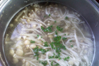 “ 平时总想炖个汤,又怕费时间,牛肉汤营养丰富,让牛肉易烂的小窍门也很多,以前同胡萝卜同炖,真的很快,汤也好喝,今天我从九点半到十点,一个小时,就OK了,想用山楂的,没买到,只好用了橘子皮,家里没有陈皮了,只能用新鲜的。炖出来的汤好喝,牛肉也烂。因为女儿爱吃金针菇,今天就用它来和牛肉内炖了,老少皆宜,呵。 ”