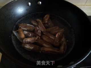 锅里加水煮沸倒入洗净的圣子煮半分钟,然后倒出去壳