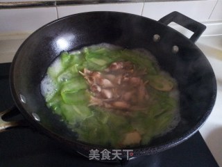 然后加入水煮沸后,倒入凉瓜再煮沸