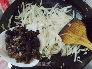 “ 做老厨白菜剩下了些白菜帮,扔了怪可惜的 以前做醋溜白菜,把白菜帮切大块炒着吃又觉得不是很香 就把它切成细丝,加肉加木耳炒着吃了,味道还很不错呢 很清香,很下饭,很有营养 ”