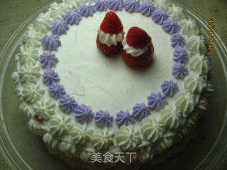 “ 这个生日蛋糕好象是前几个月弟弟生日时做的,用了草莓和QQ糖做了简单的装饰,还是用了我唯一的裱花嘴挤了满满的花,很适合新手来操作。 ”