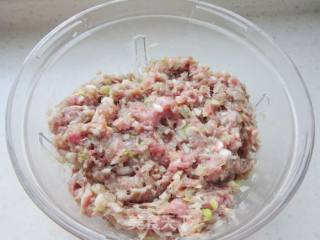 葱切成末,羊肉剁成肉泥,放入葱 胡椒粉,盐,羊肉汤 搅拌均匀