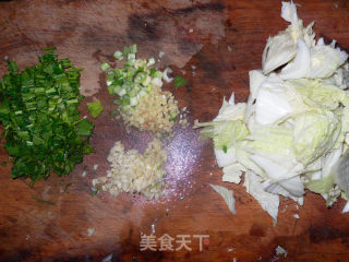 准备材料,香菜切小段,葱姜蒜切末,白菜斜刀片成片