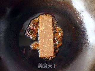 6.放入整好的坯子。不时的翻炒。开小火慢慢煎,轻轻用铲子压。