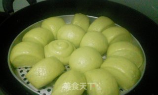 大火蒸10-15分钟。焖5分钟再开锅。一锅绿得美轮美奂的菠菜汁馒头就做好了。