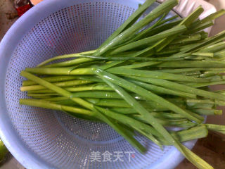 先将大蒜的根部热油煸炒几分钟,主要是根部比叶子难熟些;