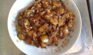 3.茄子已经煎熟,因此在炒时不会再吸入多少油,锅里加少量油即可,下锅加入调味料快速翻炒均匀即可。