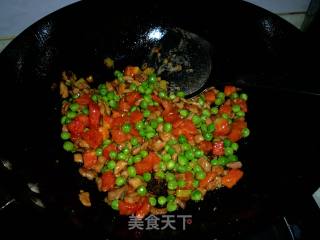 放入豌豆煸炒片刻。