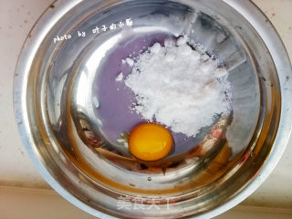 冰糖粉、炼乳加入蛋黄里,搅拌