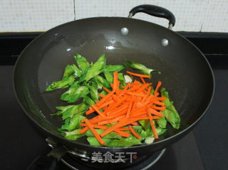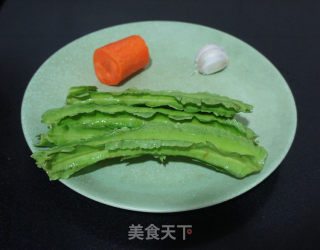 四棱豆择去头尾,洗净切成段,胡萝卜去皮切丝,大蒜拍碎;