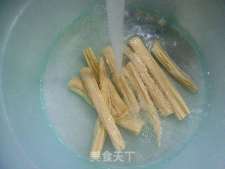 将已泡发的腐竹清洗一下。