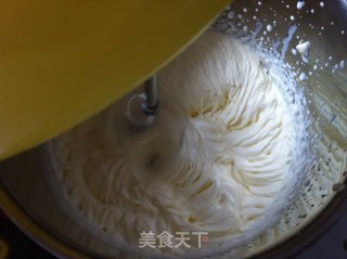 将打好的奶油霜倒入牛奶蛋液中