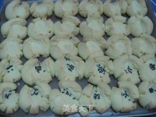 1准备好材料,黄油室温自然软化。黄油加入糖粉后充分打发。 蛋黄碾碎筛入打发好的黄油里。2充分搅拌均匀。3玉米淀粉和面粉混合后筛入黄油里,用橡皮刮刀切拌均匀。4再用手揉成团,装入保鲜袋,放冰箱冷藏1小时。5揉成每个10克左右的小团。6分别用手按压。7烤箱预热160度,中层上下火,20分钟左右。